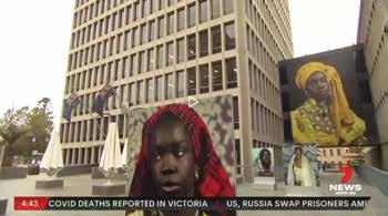 Privately owned residential and commercial building 99 Spring St was transformed with a large image by Sydney based artist Richmond Kobla Dido. Applied temporarily and directly to the building’s brick, the image towered 5 stories over Spring St and was an unmissable artwork within the festival. The artwork, Men Do Not Cry, was developed as a portrait series, highlighting the stereotypes surrounding men—specifically black men—and displays of public emotion and vulnerability.