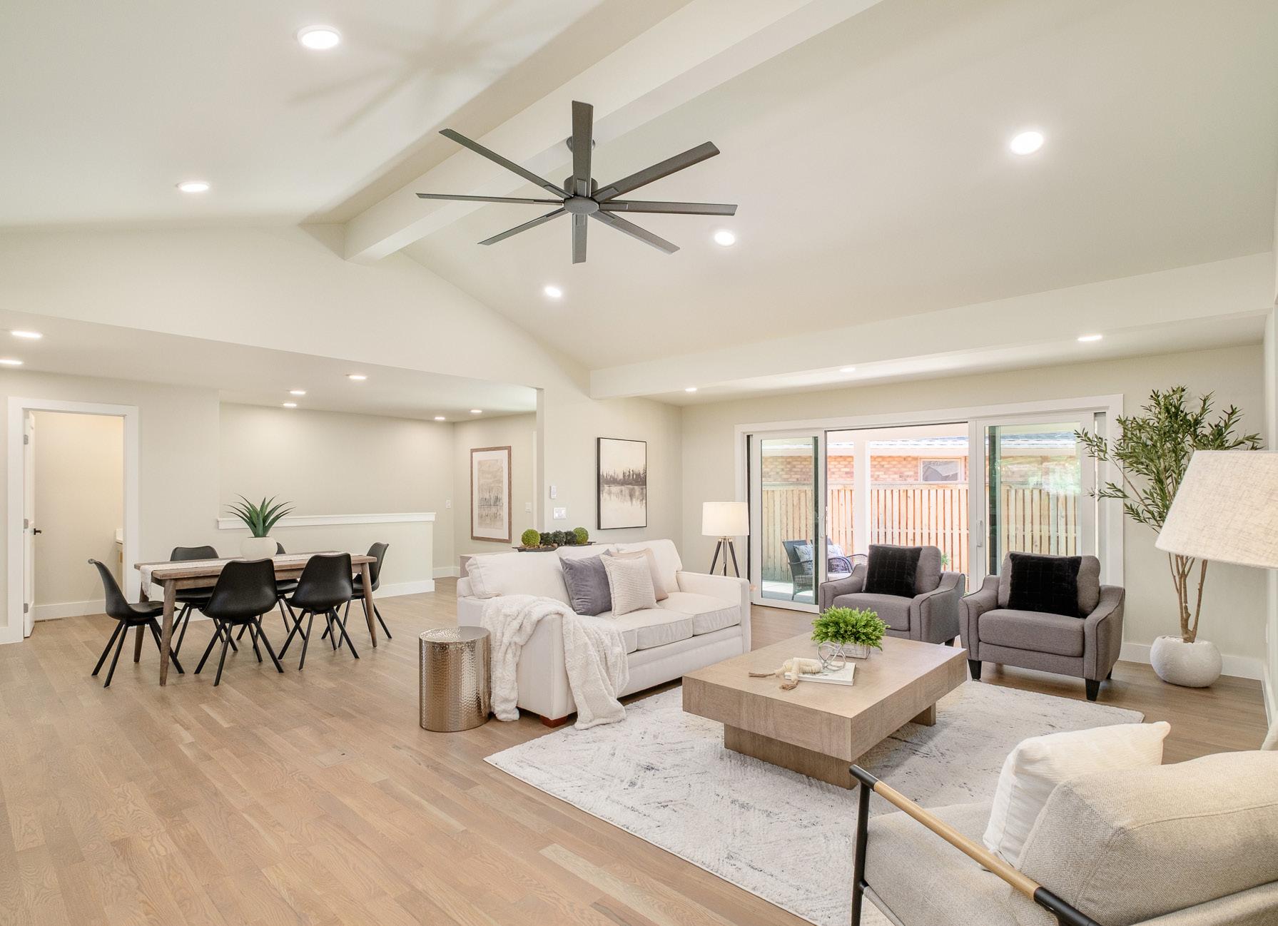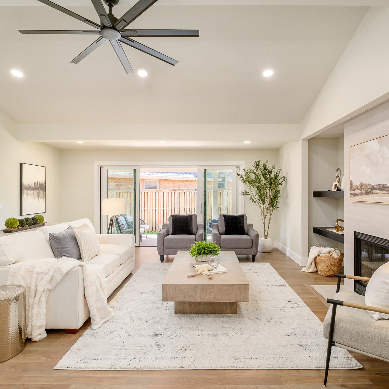 Multiple sliding glass doors open to covered patios, seamlessly blending indoor and outdoor living. Every detail has been carefully curated— from wide-plank White Oak flooring and raised ceilings to level 5 smoothfinish drywall, designer lighting, and beautifully appointed kitchen and baths. New windows, doors, and a brand-new roof enhance efficiency, comfort, and peace of mind.