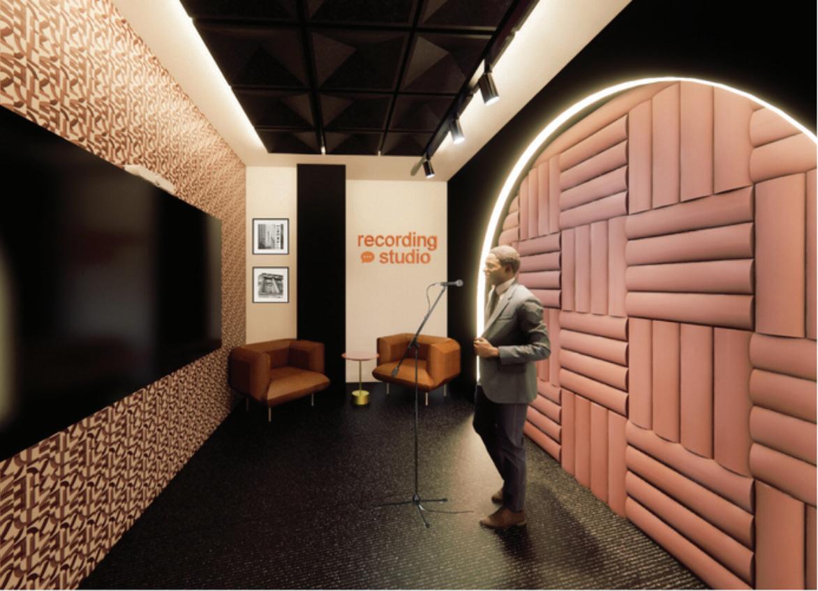 Inspired by recording studios and concert venues, the space invites movement and collaboration while offering zones for focus and reflection. Dynamic wayfinding elements and rhythmic spatial layouts echo the flow of sound and performance, guiding users through a seamless experience of work and play. Through thoughtful lighting, curated lounges, and performance-inspired details, NEXT becomes morethan a workplace, but an inspiring hub that celebratescreativity, connection, and the spirit of performance.