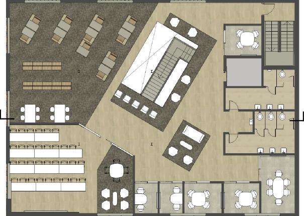 Responsibilities: Site map, producing floor plans, material board, creating pedestrianized street, renderings of art gallery and Christophers Rooftop