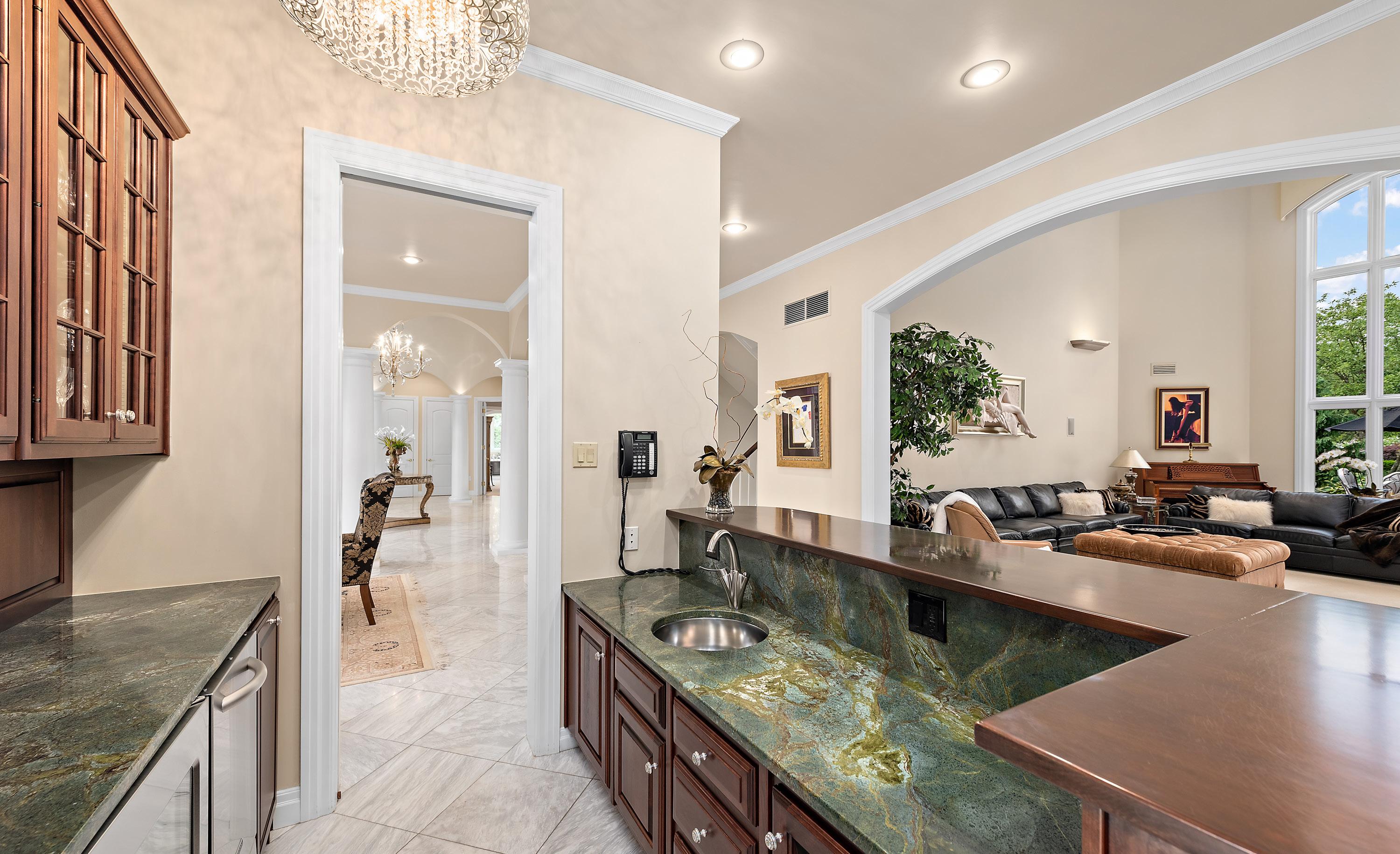 As you enter the home, you’re met by the grand entry leading to the formal living and dining rooms, an executive office, and the magnificent primary suite. The primary bedroom includes a sitting area, two walk-in closets, and a full bathroom centered around an infinity bath. Additional highlights include three additional en suite bedrooms, vast kitchen with breakfast dining area, wet bar, main floor laundry, family room, sun room, game room and gym, locker rooms, four car garage, a second office, tons of storage, and so much more!