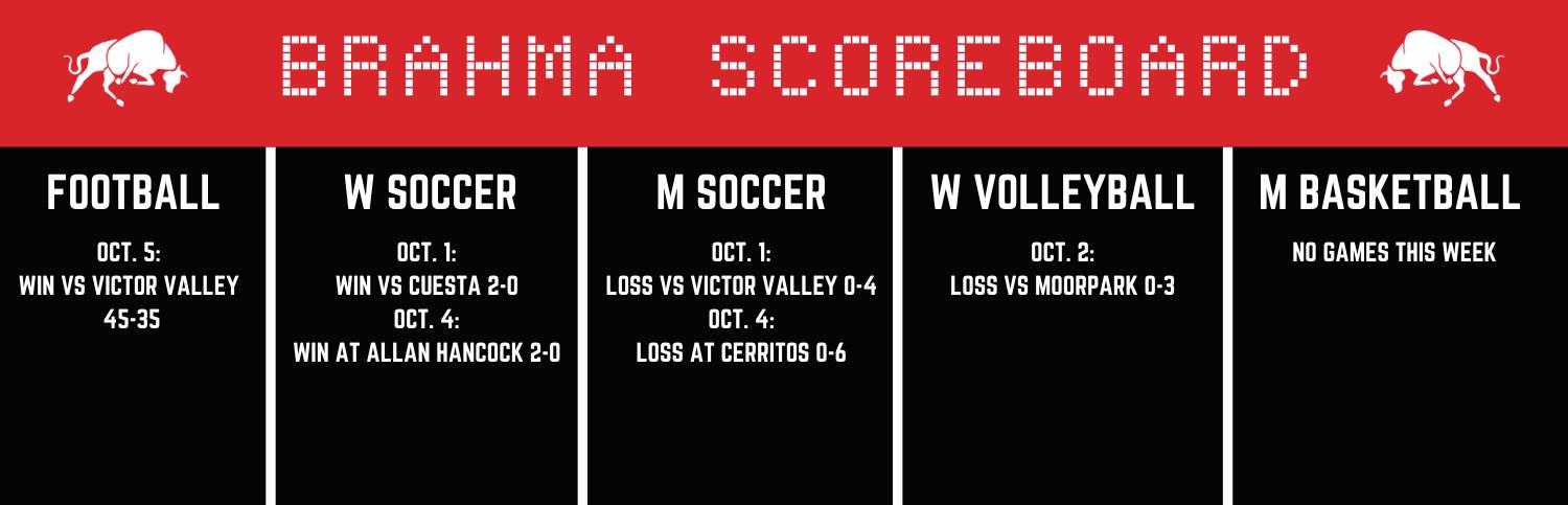 The Pierce College Brahmas pulled ahead against the Victor Valley Rams on Oct. 5, with a 4535 win, which increased their overall record to 3-2. This game marked the final game before the football team enters before conference play.
