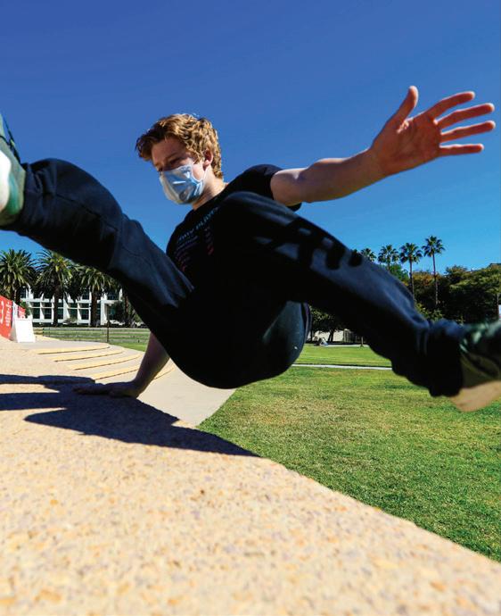 Joseph Unruh Co-founderJoseph Unruh leaps off of a palm tree at the CSUN Library in Northridge, Calif., on Oct. 9, 2021.