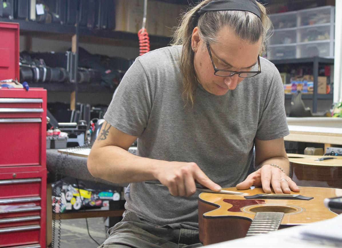 “Even though Eric is known as the guy who can repair a guitar from pieces of broken wood, he was still willing to help me with small bits and pieces of my gear. He took the time,” Fortin says. His shop is successful, and shows no sign of stopping as it grows each year. He works hard to maintain that level of success, and spends large amounts of time in the shop, 13-to-14 hours a day, every day, except for Sundays.