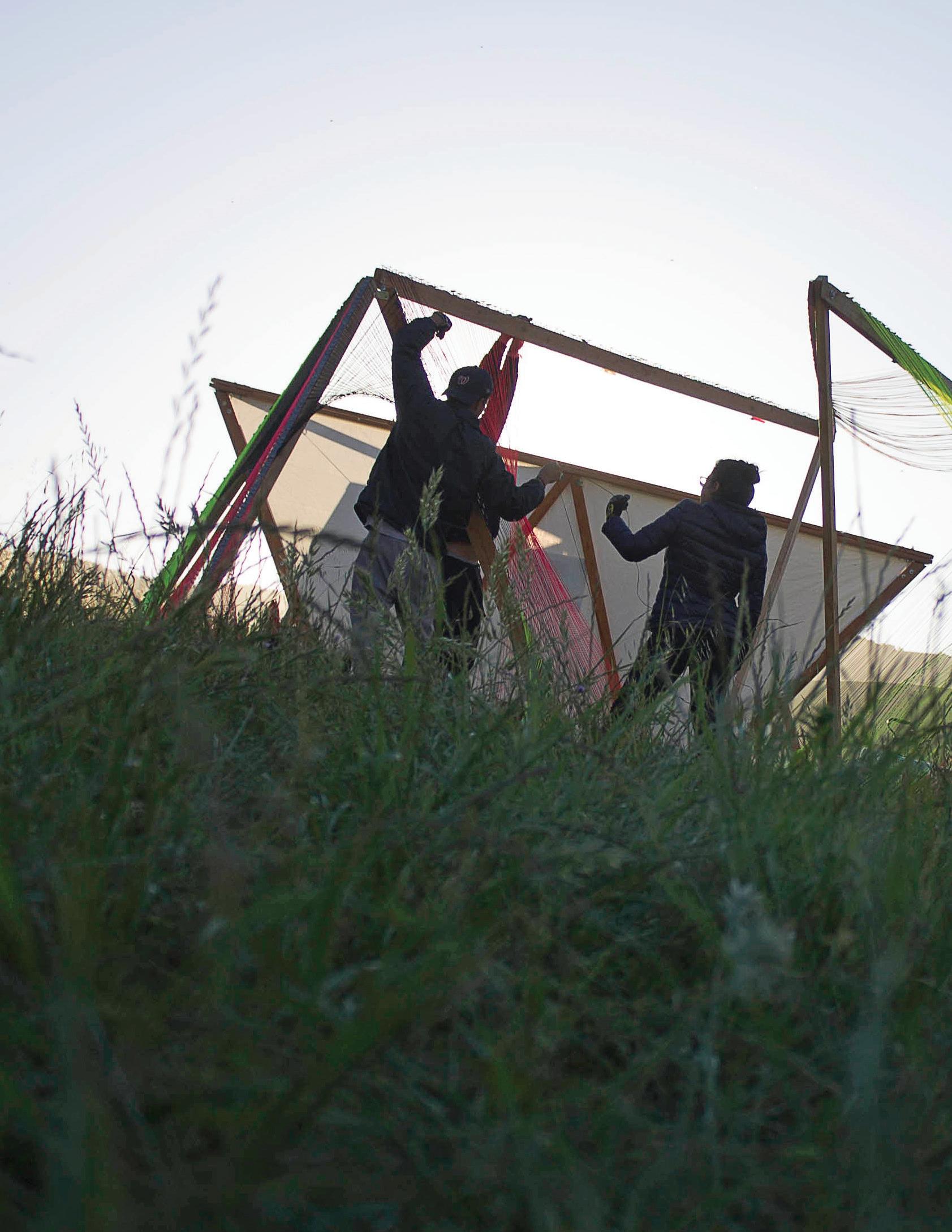 The sun rises on the canyon and with it comes not the sounds of birds singing but the whirring of drills. Hammering echoes over the hills that are covered in grasses nearly waist high in some spots. A breeze caresses the curves of the hill and causes the grass to wave lackadaisically in cool of this early Saturday morning. The continuing of construction interrupts the tranquility that usually falls over the area on day two of California Polytechnic State University’s Design Village competition.
