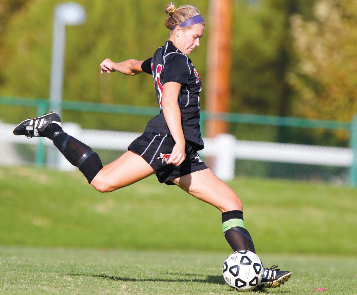 KICK: Emily Streb takes a free kick during a game on Oct. 12.