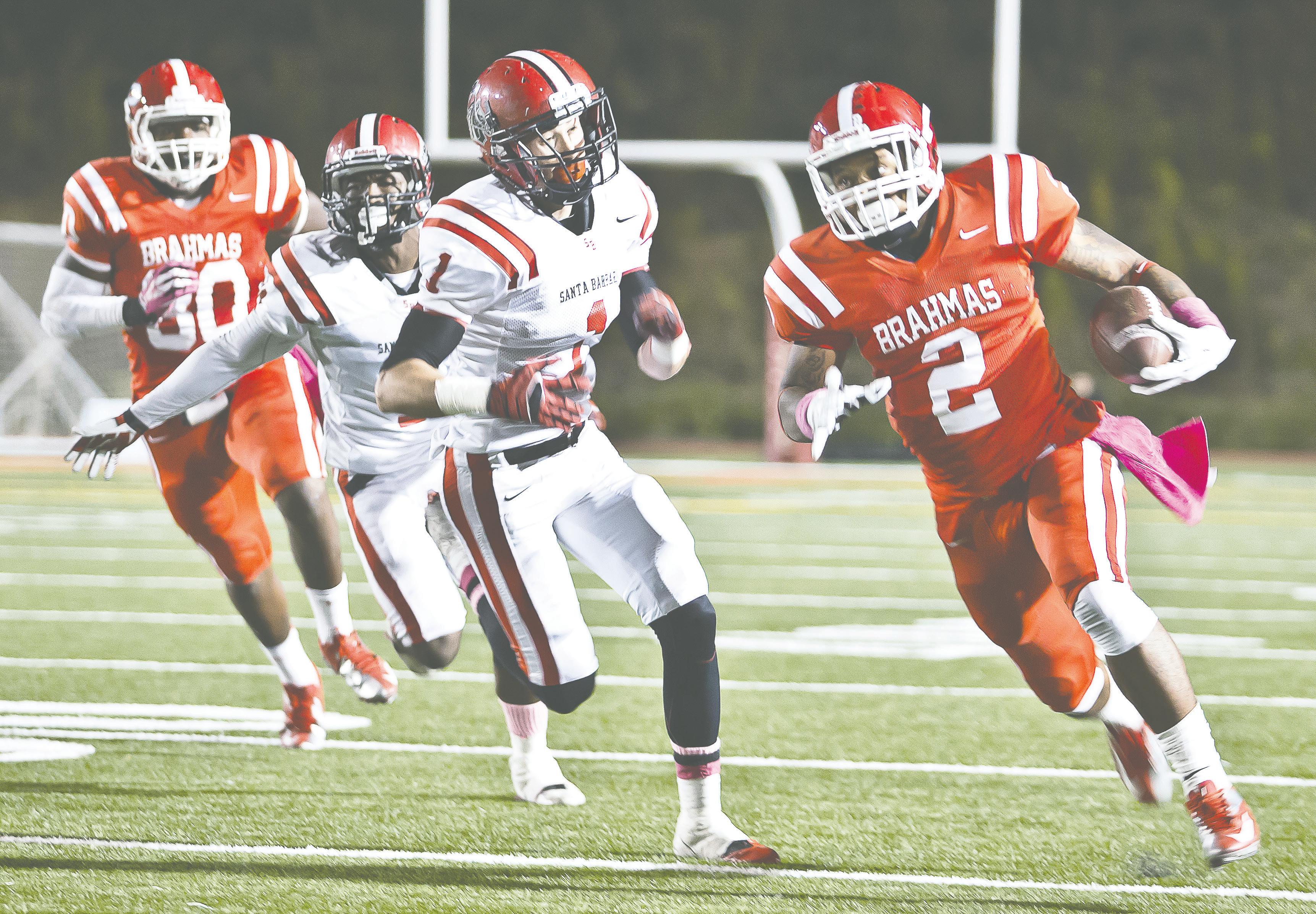 Santa Barbara even got an interception later that quarter for a touchdown, but by then Pierce had already scored two touchdowns, putting the Brahmas well in the lead.