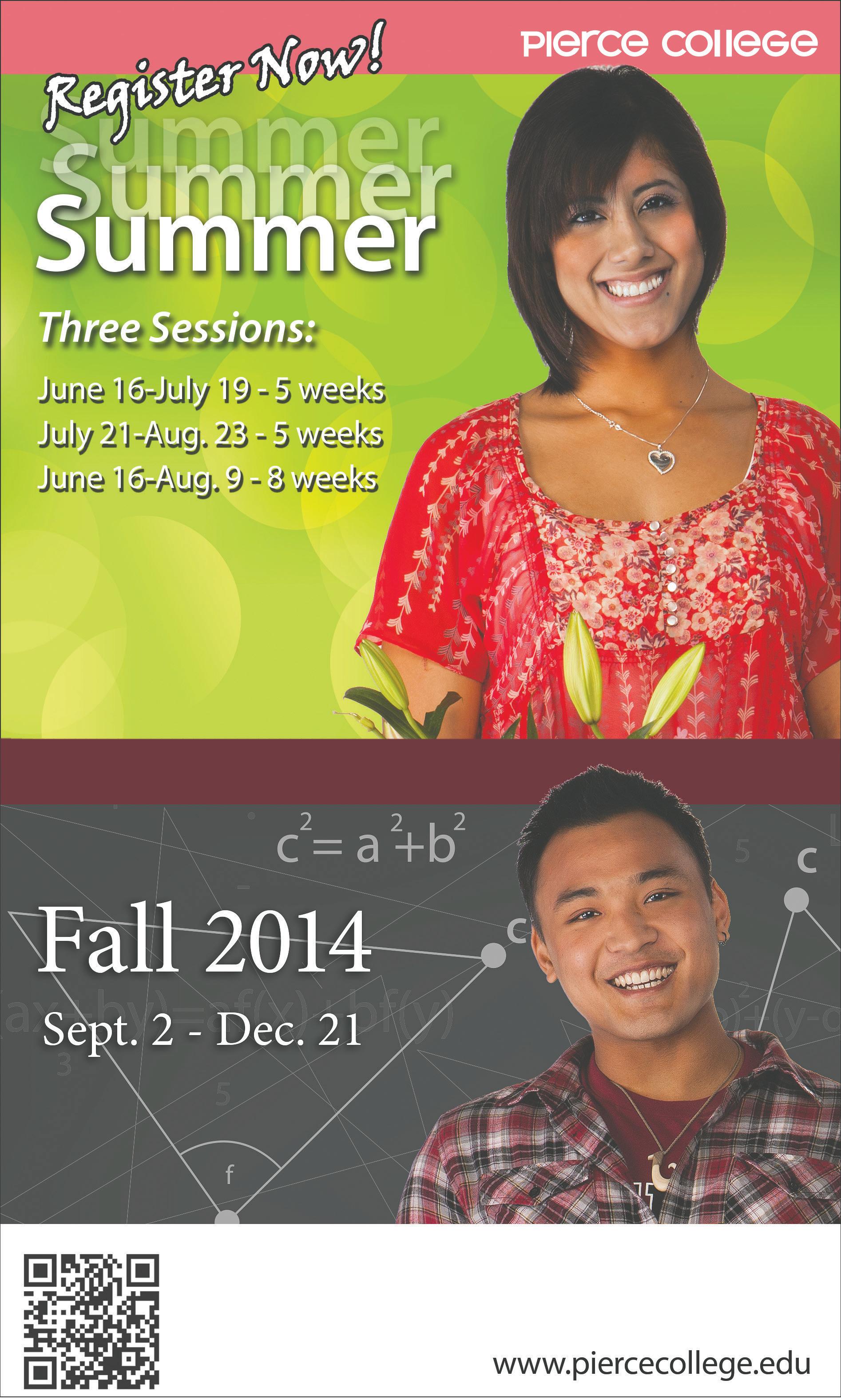 :: HAVEN’T EARNED 60 CREDIT HOURS? NOT A PROBLEM. Unlike UC and CSU campuses, we don’t require you to have 60 units to transfer to the Mount. :: CONVENIENT APPLICATION AND TRANSFER PROCESS. Our dedicated staff will work with you through the application and registration process to ensure an easy transfer. :: UP TO $16,000 IN SCHOLARSHIPS. Once admitted, all transfer students are considered for up to $16,000 a year. MOUNT ST. MARY’S COLLEGE Transfer Applications Being Accepted for Fall 2014 Pierce College.indd 1 5/1/14 10:58 AM FOLLOW US ON TWITTER FIND US ON FACEBOOK California State University, Long Beach College of Continuing and Professional Education No formal admission to CSULB required Earn units toward your degree Enroll on a “space available” basis Two 6 - Week Sessions May 27–July 3 (S1S) July 7–August 15 (S3S) One 12 - Week Session May 27–August 15 (SSD) Lorinda Owens Ad size: 6.3125 in. x 5.25 in. Los Angeles Pierce College Call: (800) 963–2250 ext. 60001 for more information. www.ccpe.csulb.edu/summer email: CCPE-info@csulb.edu CSULB SUMMER SESSIONS 2014 More than 75 Online Summer Classes Register Now SS_PierceCollege2v_Ad2_S14.indd 1 3/4/14 4:57 PM