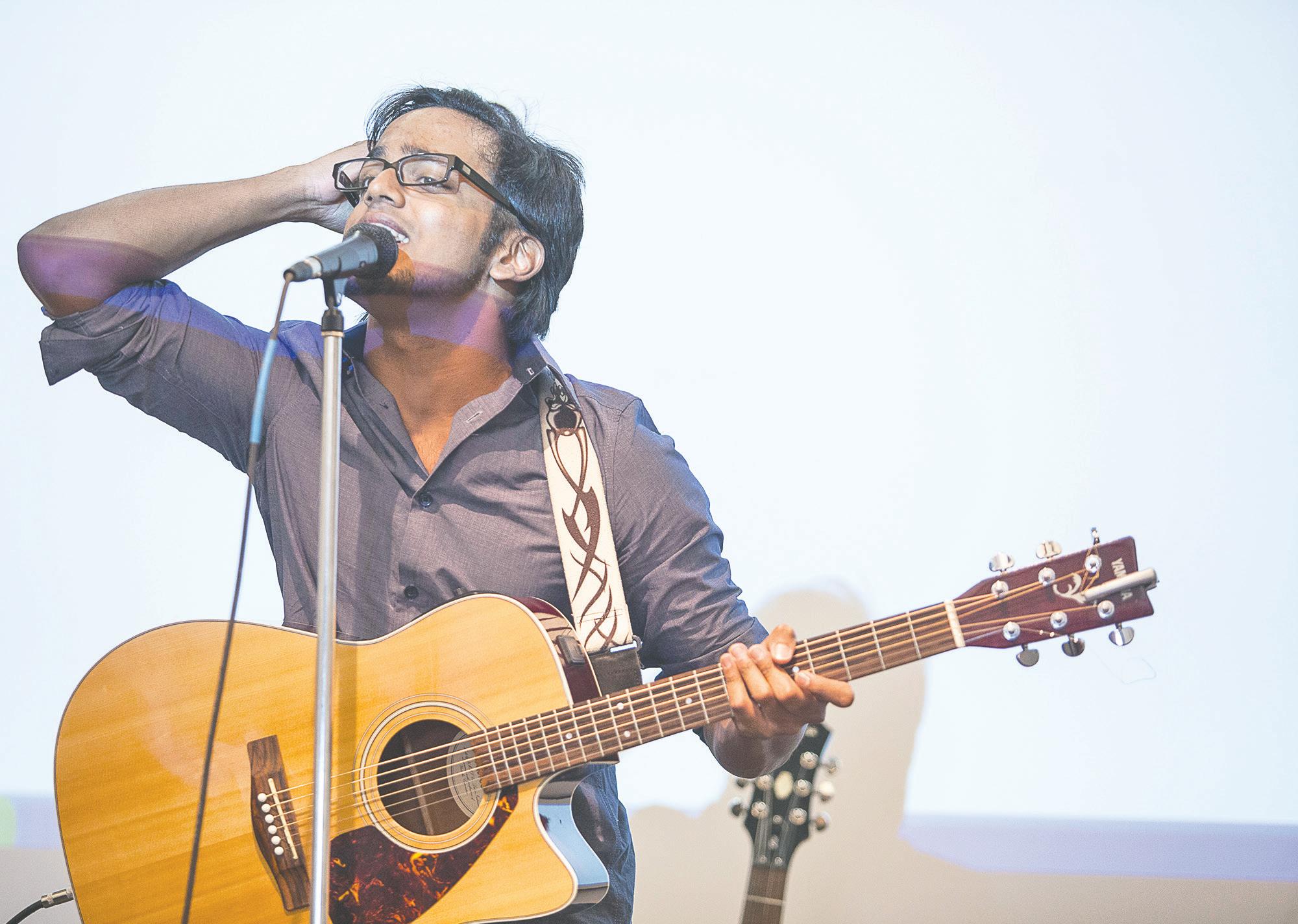 David Durrani performs a live set of original works and a cover. Students gather together to listen to live perfomances and view films for Diversity Day in the Great Hall.