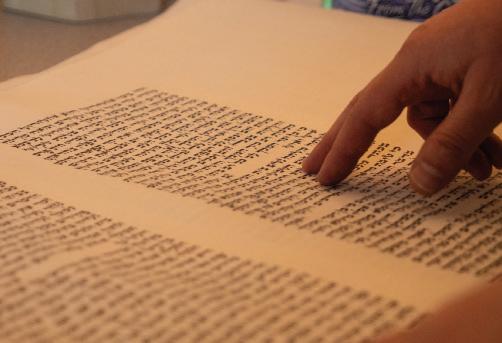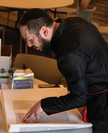 LEFT AND BOTTOM LEFT: Rabbi Aaron Greene reads scripture from The Book Of Esther to participants in the Chabad Club Purim event, in the Great Hall at Pierce College in Woodland Hills, Calif., on Tuesday, March 3, 2026. March 3, 2026.