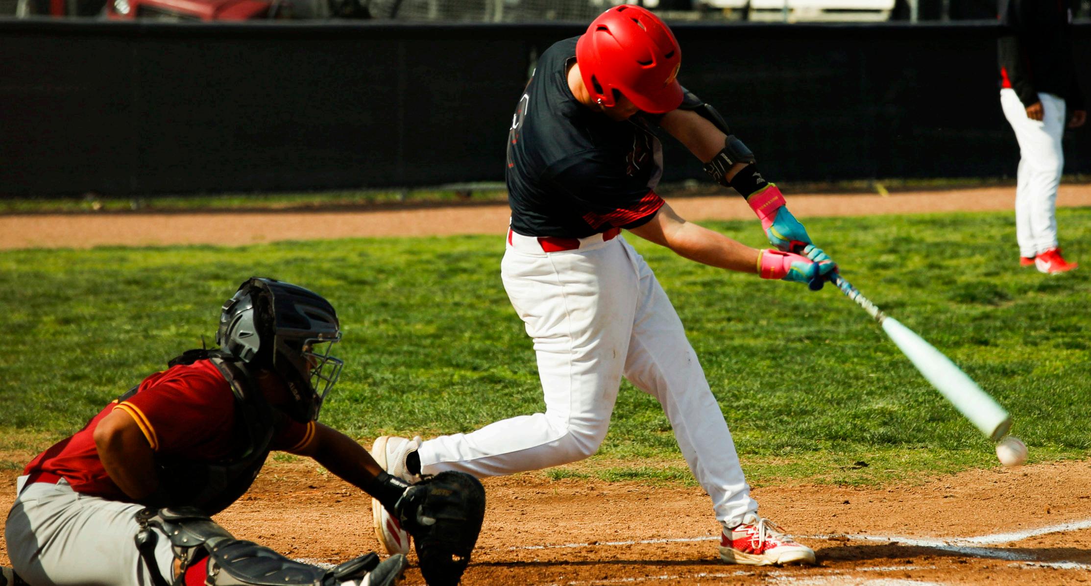 Pierce College Utility Micah Klotz (#12) bats against Pasadena City
