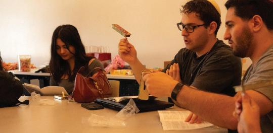 TOP:(Left to right) Chabad Club President Sarah Sabzanova, a Political Science major, Dennis Levin, a Computer Information Technology major and Jordan Youssefi, a Business Major, follow along and spin their graggers (metal ratchet) to drown out the names in memory of those who are evil at the Chabad Club Purim event, in the Great Hall at Pierce College in the Woodland Hills, Calif., on Tuesday, March 3, 2026.