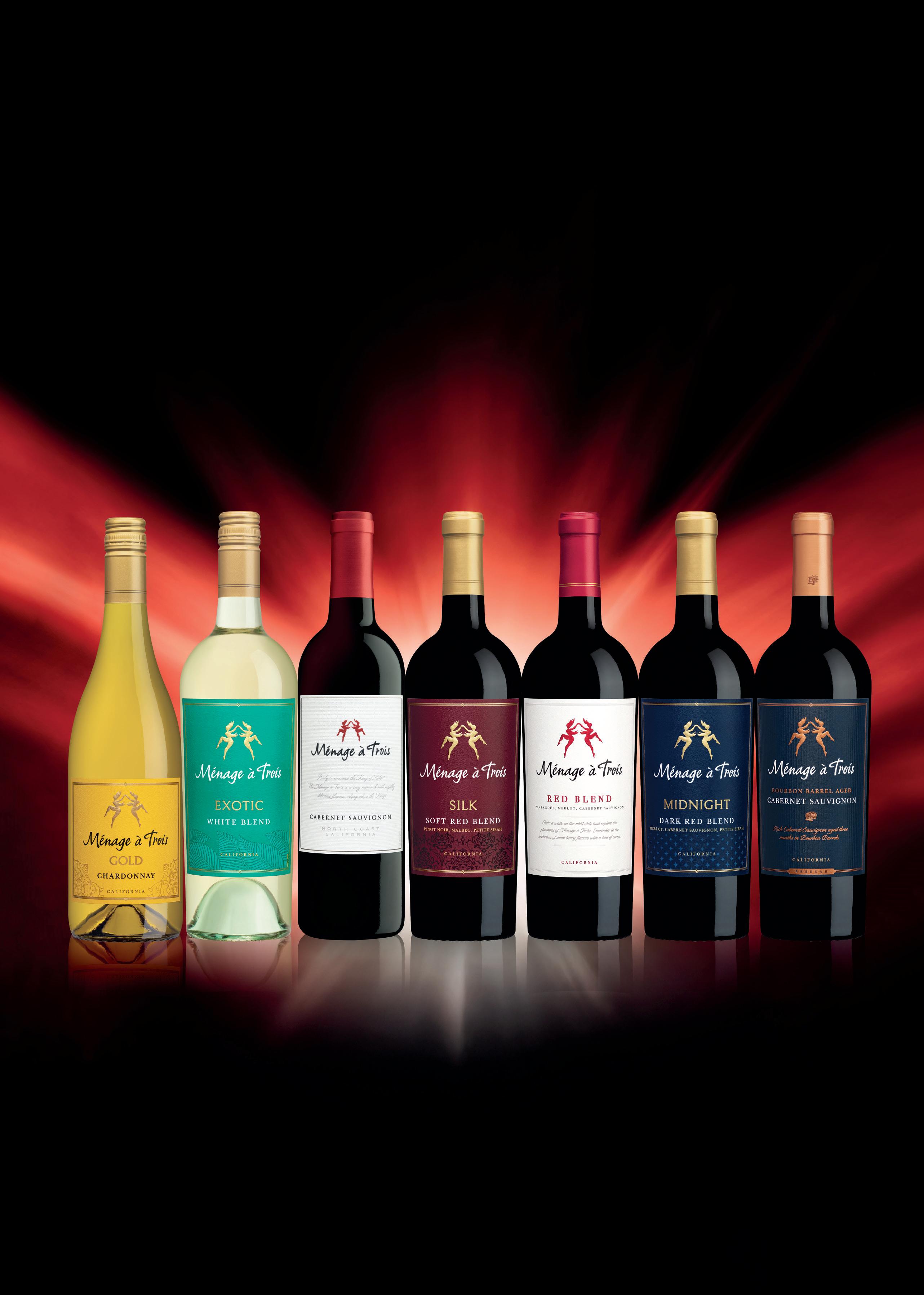1996年にセントヘレナのワイナリーで2人の精神科医が3つの赤品種をブレンドしたのが始まり。メナージュ・ア・トロワ(フラ ンス語で三角関係の意)と名付け、ラベルにはロールシャッハ・テスト風の2人のダンサーをデザインしました。創業者たちはダ ンサーを抽象的に用いることで、ワインの官能的でスリリングな味覚体験と、魅力的で遊び心のある個性を伝えようとしたの です。すぐに愛好家たちに広まり、白とロゼのブレンドも開始。2004年にトリンチェロ・ファミリー・エステートの傘下となり、 さらに拡大しました。