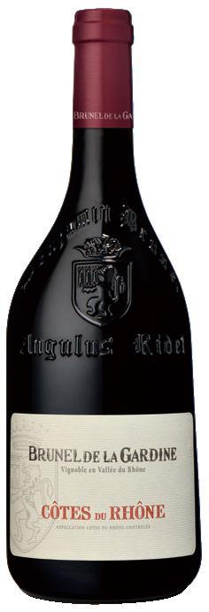 ’21 ブリュネル・ド・ラ・ ガルディーヌ コート・デュ・ローヌ ルージュ スミレ色の縁を持つガーネット色に、 赤い果実、土の香り、甘いスパイス のアロマを秘める。濃厚なシラーとグ ルナッシュの融合から生まれる、ジュー シーで飲みやすい味わい。