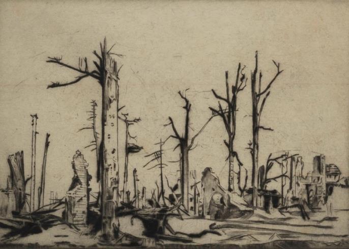 27. (right) Sir William Rothenstein, Outside Bourlon Wood, No.1 from 12 Dry-Points, Landscapes of the War 1918-1922, published by The Cotswold Gallery, 1925