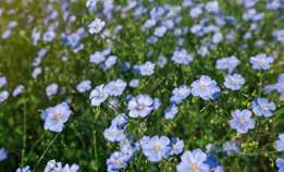 „Im Mai wird das Korn immer länger und Ende Mai kann man die ersten Ähren im Weizen sehen. Sie ragen aus den grünen Blättern heraus. Ebenfalls Ende Mai beginnt der erste Flachs zu blühen (im April gesät). Er blüht am Tag und nachts sind die Blüten geschlossen. Das sind kleine blau-violette Blüten.“ Flachs wurde früher wegen der Fasern, aus denen man Garn spinnen kann, sehr viel angebaut. Bis zum 18. Jahrhundert war Flachs ein wichtiger Rohstoff für Textilien, aber jetzt ist er durch Baumwolle ersetzt worden.