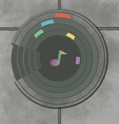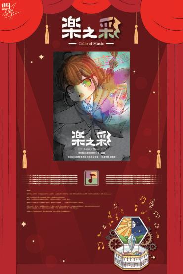 我們將聯覺裡的「抽象概念引發的感覺」這點 特色為設計靈感 ,以感知音樂所擁有的色彩架構設計,中間 音符所延伸的顏色,不僅代表著此故事中的三位角色,同時也想強調這是個以音樂為主題的故事。