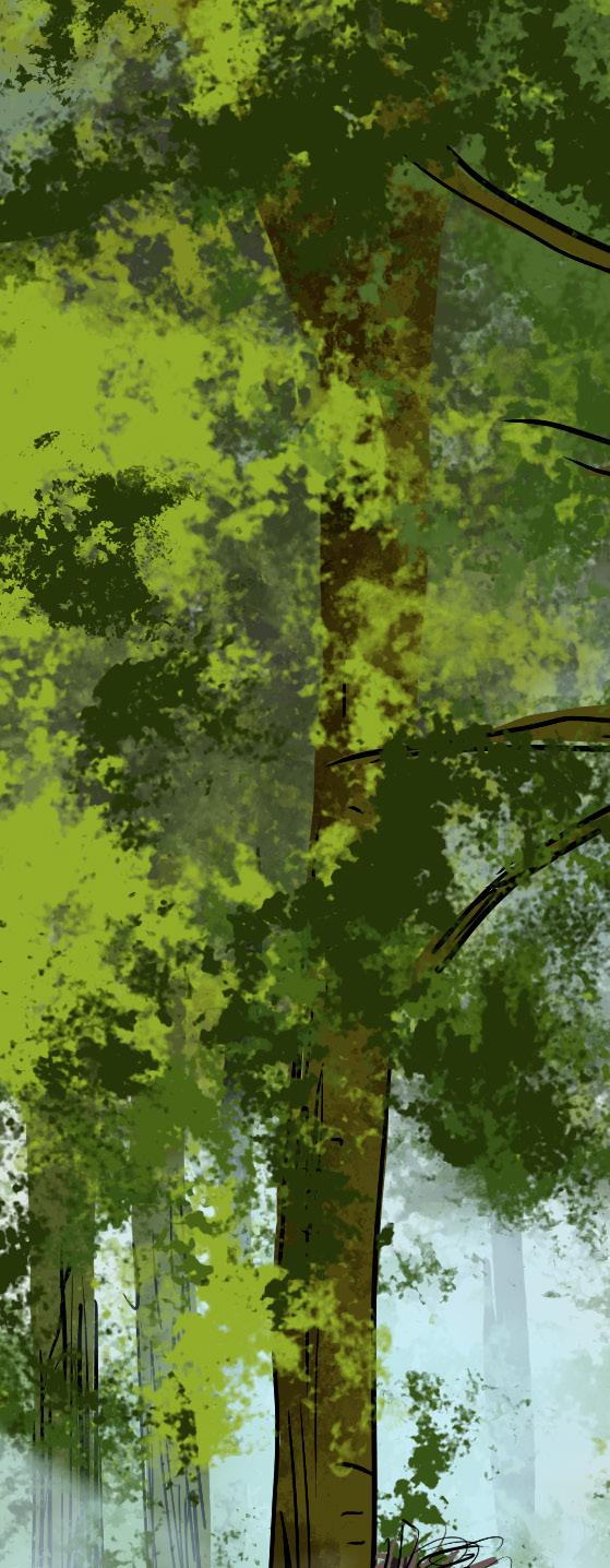 Da de har hilst på alle planterne og dyrene, sætter de sig i skovbunden.