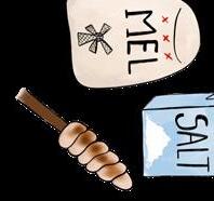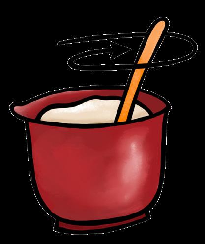 Ca. 8-10 stk. Redskaber: Et målebæger, en teske, en skål, en grydeske og lange snobrødspinde.
