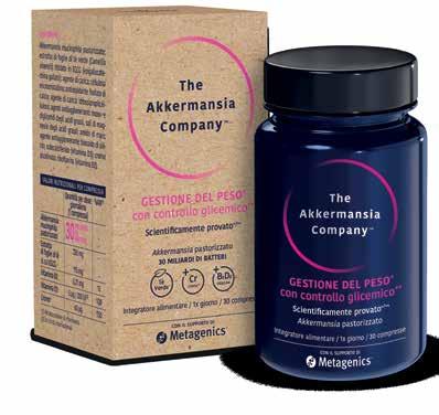 Disponibile dal 15/12 * L’ EGCG del tè verde aiuta a controllare il peso corporeo ** Il cromo contribuisce al mantenimento dei normali livelli di zucchero nel sangue CON IL SUPPORTO DI Siamo molto orgogliosi di essere la prima azienda a firmare un accordo di partnership con The Akkermansia Company. Abbiamo in programma di investire nella ricerca attraverso la promozione e la realizzazione di studi clinici di intervento in stretta collaborazione con gli specialisti della salute e gli enti di ricerca. I prodotti formulati con Akkermansia muciniphila aprono la strada a una nuova generazione di integratori alimentari.