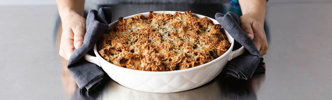 CHESTNUT, THYME & APRICOT SAVOURY BREAD PUDDING