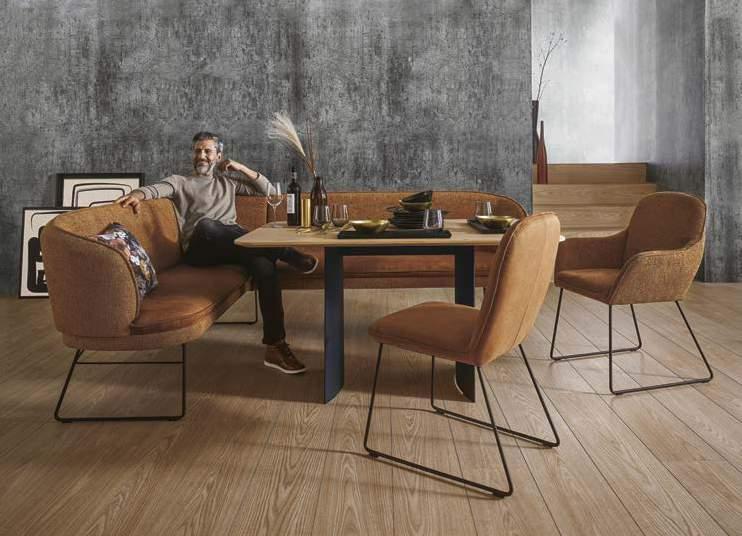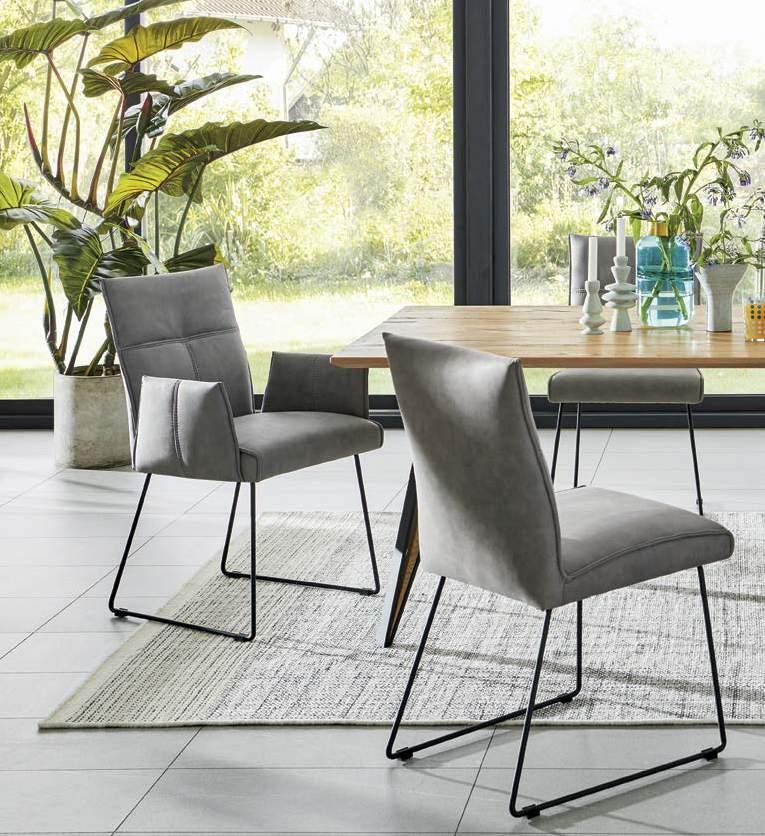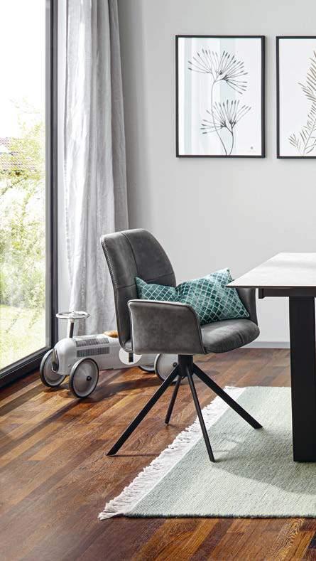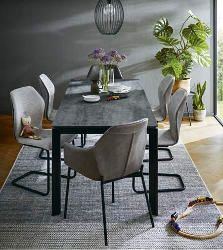 01 Global dinner 7151 Freischwinger mit Griff in Stoff Sneak taupe, anthrazit oder grey, 100% Polyester, Gestell Eisen schwarz oder Edelstahl, BHT ca. 45x97x59 cm, je 169.-* 01 Global dinner 7151 Freischwinger je 169.-*