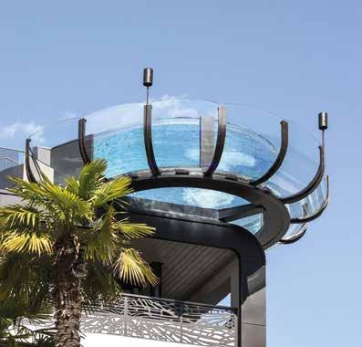 Die 3.200 m2 große „Roof Top“-Wellnessoase ist das Highlight des Wellnesshotels. Im beheizten Sole-Infinity-Pool liegend, genießen Gäste ganzjährig den Rundumblick auf die Berggipfel, die Stadt Meran und den Thermenpark. Ob nach dem Aufguss in der Finnischen Sauna, der Bio-Heusauna oder einem Besuch im Dampfbad, im Ruheraum mit Feuerstelle schweift das Auge in die Weite,