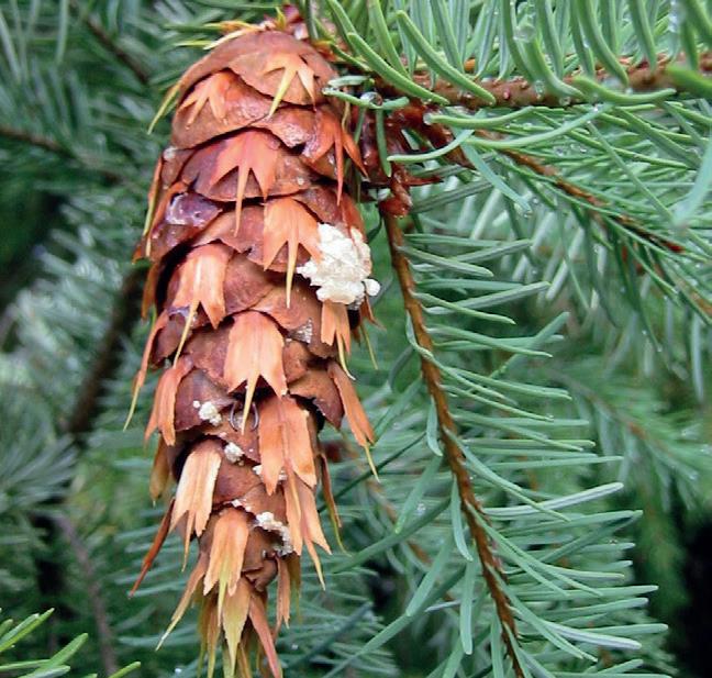 12. Abies glauca Coerulea - Amerikanische Blau-Tanne È una conifera di taglia imponente, a portamento conico con sommità piatta in età longeva, che raggiunge altezze di 75 m e il cui tronco può raggiungere 150 cm di diametro. La corteccia, liscia e grigia, con l‘età diviene marrone e rugosa con periderma rossastro visibile nei profondi solchi. I rami principali sono sparsi, ascendenti; i ramoscelli secondari sono opposti, di colore marrone chiaro, pubescenti. Le gemme, resinose, sono di forma rotondeggiante, porpora, marroni o verdi, ad apice arrotondato; le perule che le rivestono sono corte, triangolari, resinose, leggermente pelose, a margine intero e punta affilata.