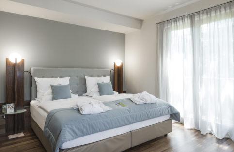 Es erwarten Sie großzügige, individuelle Zimmer und Suiten, eingerichtet mit luxuriösen Betten, die höchsten Schlafkomfort bieten, schönen großzügigen Bädern, Holzböden und Balkonen. Die Aussicht verführt, nimmt Ihre Gedanken mit hinaus ins Himmelblau und lässt Ihren Blick im tausendfachen Grün unseres Parkes ruhen.