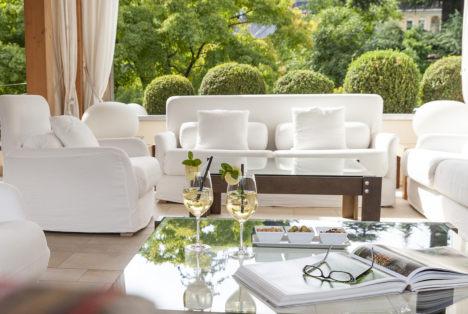 der Bibliothek, in den EmpfangsLounge, in den historischen Gängen oder auf der legendären Wein-Terrasse. Sie sitzen dort, wo es Ihnen gefällt.