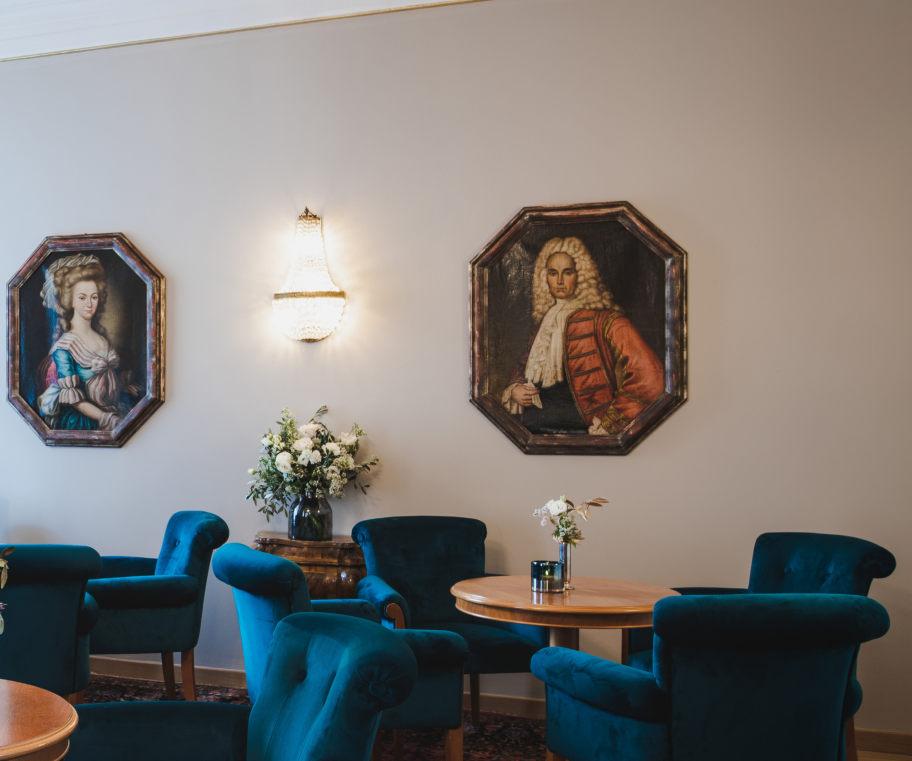 der Bibliothek, in den EmpfangsLounge, in den historischen Gängen oder auf der legendären Wein-Terrasse. Sie sitzen dort, wo es Ihnen gefällt.