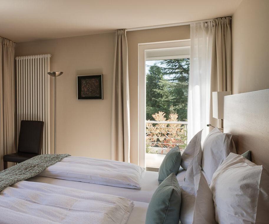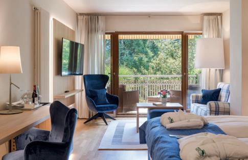 Es erwarten Sie großzügige, individuelle Zimmer und Suiten, eingerichtet mit luxuriösen Betten, die höchsten Schlafkomfort bieten, schönen großzügigen Bädern, Holzböden und Balkonen. Die Aussicht verführt, nimmt Ihre Gedanken mit hinaus ins Himmelblau und lässt Ihren Blick im tausendfachen Grün unseres Parkes ruhen.