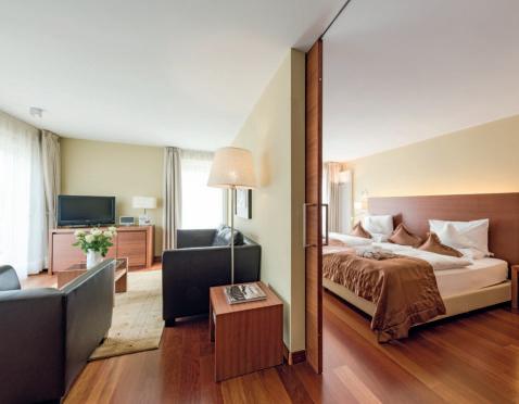 Highlight: Relaxen im großen, mediterranen HotelPark, Spa auf 3 Ebenen, Dachterrassen-Suiten, 3 Gehmin. ins Zentrum.