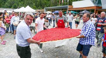 produzenten (VIP) gehört, auch Kirschen und verschiedene Gemüsesorten an. Die Erdbeeren bestechen mit hoher Qualität und sind aufgrund ihres vollmundigen Geschmacks sehr beliebt. Landesrat Luis Walcher und Landesrätin Rosmarie Pamer, die am 30. Juni zusammen mit dem Marteller Bürgermeister Georg Altstätter die große Erdbeertorte anschnitten, lobten den Fleiß der Bäuerinnen und Bauern und würdigten den Einsatz aller, die sich bei der Organisation des Erdbeerfestes und der Erdbeertage ins Zeug gelegt haben. Vor allem mit dem Anbau von Erdbeeren sei es in der abwanderungsgefährdeten Gemeinde Martell gelungen, ein lokales Nischenprodukt zu etablieren und die Marteller Erdbeeren weit über die Landesgrenzen hinaus bekannt zu machen. Die Erdbeeren