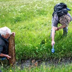 Gruppenbild vor dem Holzstapel (siehe Seite 20) auf dem Kulturhauplatz (v.l.): Brigitte Kirchlechner, Christine Kaaserer, Georg Pircher, Helmuth Oberkofler, Franz Winkler, Ludwig Pertl, Klaus Bliem, Dieter Pinggera, Hannes Ille, Günther Hohenegger, Sigfried Plangger, Barbara Folie, Andreas Platter und Heinrich Gander.Bei der Besichtigung der Bestandsfläche „Blasenegg“ am Nördersberg.