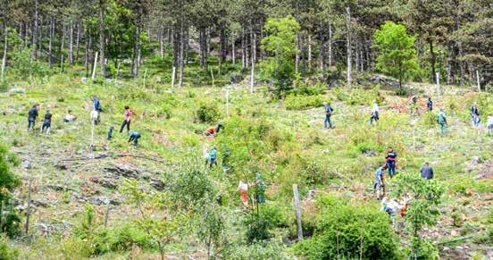 schätzung für die vielfältigen Leistungen der Wälder braucht. Die Politik sei in diesem Sinn ebenso gefordert, wie die Gesellschaft insgesamt. Auch die Gemeinden sollten aktiv werden, die Jägerschaft, die Schulwelt und weitere öffentliche Institutionen und Bildungseinrichtungen. Ebenso klar ist für den Fachmann, dass Waldbesitzer für die Ökosystemleistungen ihrer Wälder finanziell belohnt werden sollten bzw. dass finanzielle Anreize für nachhaltige Waldumbau-Maßnahmen in Aussicht zu stellen seien. Die zum Teil fehlende Wertschätzung den Wäldern gegenüber sowie die unzureichende finanzielle Förderung von zukunftsorientierten Umbaumaßnahmen waren nur zwei von vielen Themen, über die im Anschluss an die Tagung bei der Besichtigung der Bestandsfläche „Blasenegg“ am Nördersberg diskutiert wurde. Auf „Blasenegg“ wurden in den Sommermonaten 2022 und 2023 nach dem Borkenkäferbefall von 2021 rund 4 Hektar Fichtenwald gerodet. Die Flächen gehören der Gemeinde Schlanders. Wie Klaus Bliem, der Leiter der Forststation Schlanders, informierte, fiel eine Schadholzmenge von rund 1.000 Kubikmetern an. Mittlerweile sei auf der Fläche bereits eine relativ starke natürliche Waldverjüngung zu beobachten. Zusätzlich zur „Arbeit“ der Natur sei geplant, heimische Laubbaumarten zu pflanzen. Auch Baumfeste mit Kindern werde es in Zukunft auf „Blasenegg“ geben. Der Einfall von Wild halte sich in Grenzen, „weil die Gegend hier stark felsdurchsetzt ist.“ Von