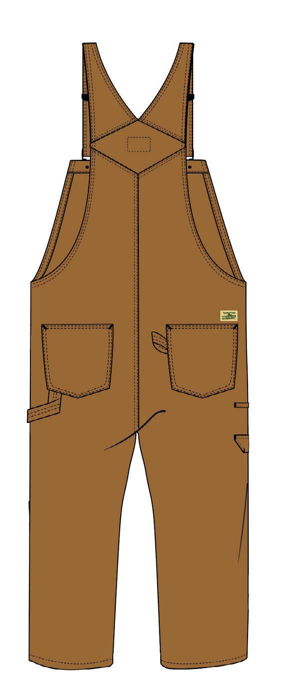 D E TA LS Wo rk we a r n s p i re d ove ra l l s w t h wa s t po c ket s t h a t t u rn i nto d o u b l e k n e e ce nte r c h es t poc ket, h a m m e r l o o p a n d g a rd e n to o po c ket