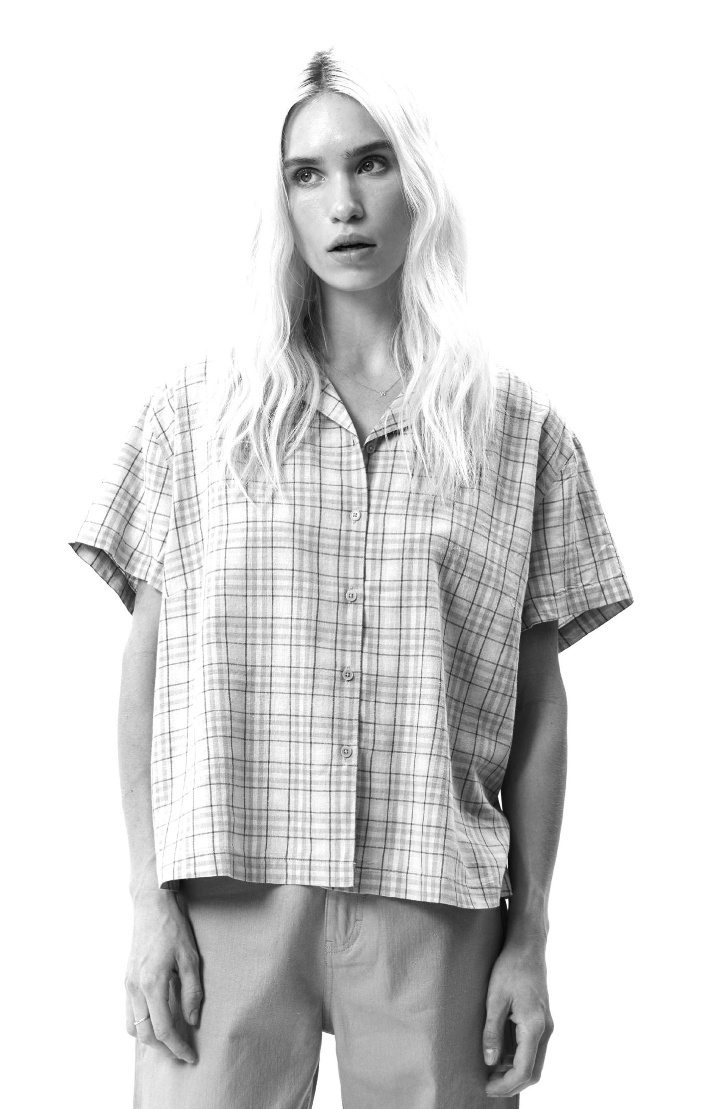 KALI - HEMP CHECK SHORT SLEEVE SHIRT - PISTACHIO CHECK