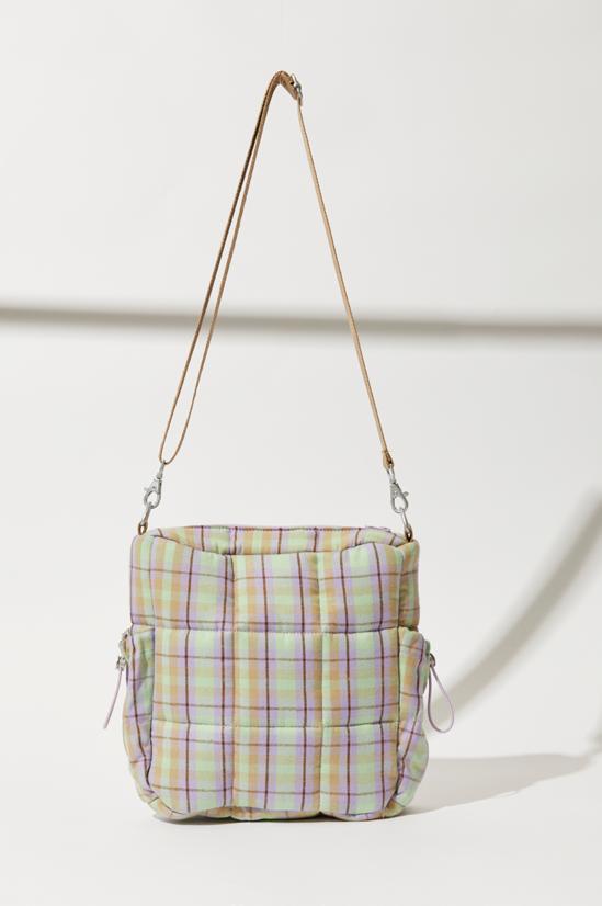 KALI - HEMP CHECK PUFFER CROSS BODY MINI BAG - PISTACHIO CHECK