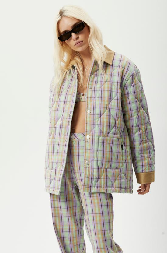 KALI - HEMP CHECK PUFFER JACKETPISTACHIO CHECK