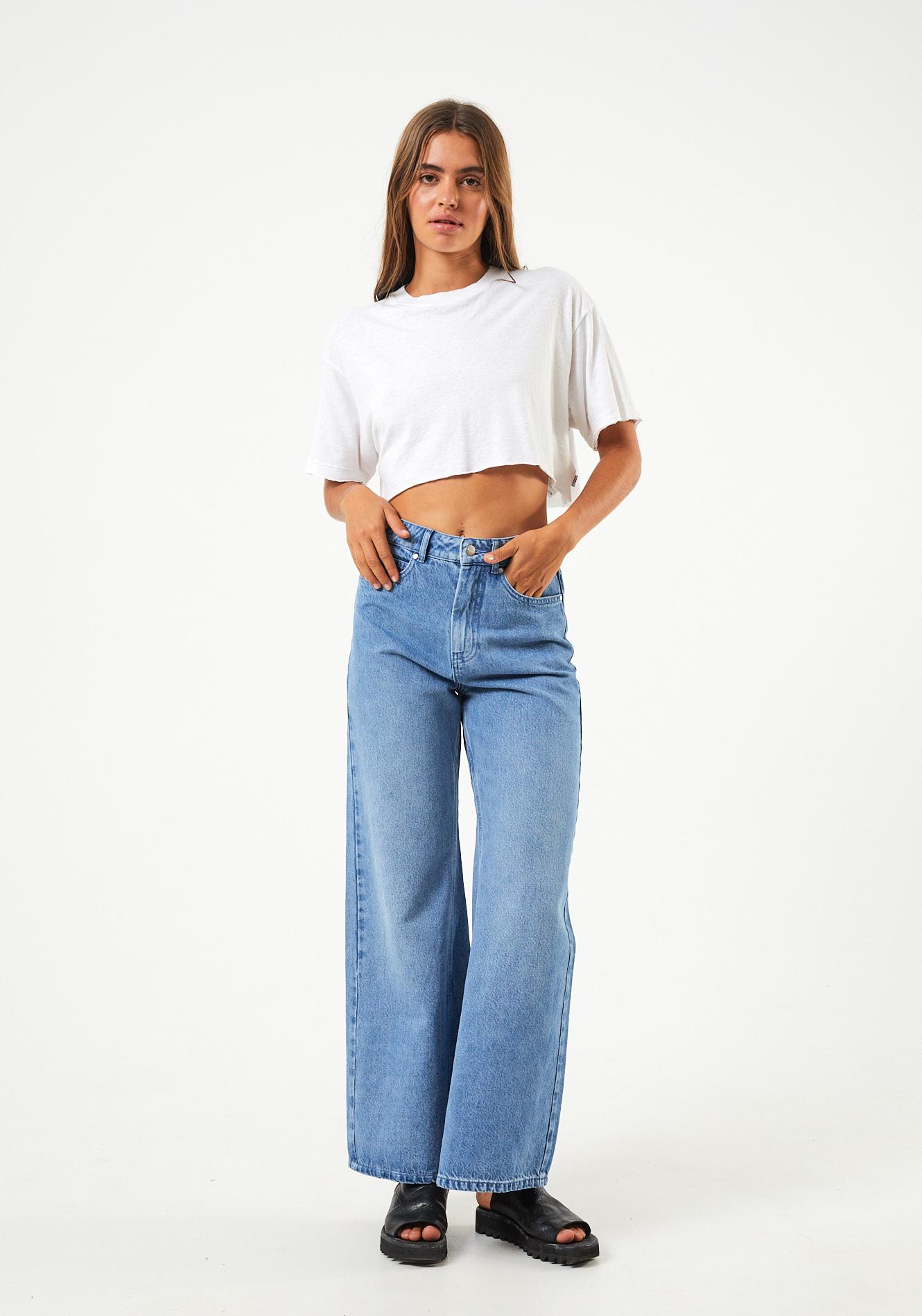 The Shelby Wide Leg Jeans ofer a fattering high-rise waist, relaxed fttting silhouette and wide leg design that falls to an ankle length in our regular Shelby’s and full-length in our Shelby Longs.