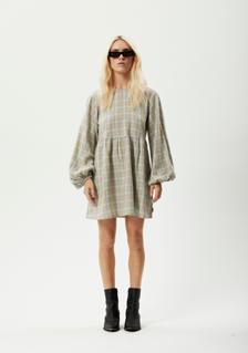 KALI - HEMP CHECK LONG SLEEVE DRESS - PISTACHIO CHECK