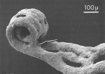 Lace lichen is one of the fastest growing lichens that we know of. Its characteristic netting forms in the apical tissues (the growing tips) and unrolls, tiny but fully formed. Here is an image of the growing tip of lace lichen (3).