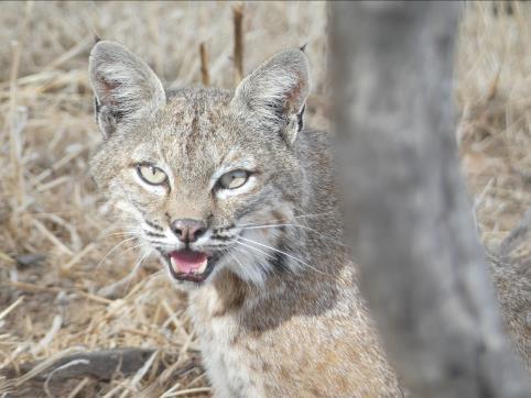 Though strictly carnivorous, bobcats have a varied diet. Small mammals rodents and rabbits tend to form the bulk of that diet, but birds, reptiles, and amphibians are also on the menu. They also prey on fawns, and in areas with deep snow they’ve been known to take down adult deer. Bobcats are ambush hunters, sneaking up before launching an attack in a burst of speed, power, and precision. They’re not built for endurance, so they don’t bother chasing prey; if the pursuit exceeds fifty feet, chances are the cat will abandon the effort. Conflicts with agriculture occasionally arise when bobcats prey on poultry, though there are instances where they’ve taken sheep and small goats.