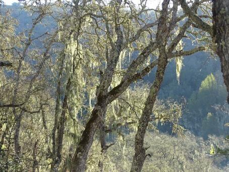 Lace lichen on blue oaks on Middle Steer Ridge Tr., January 2022