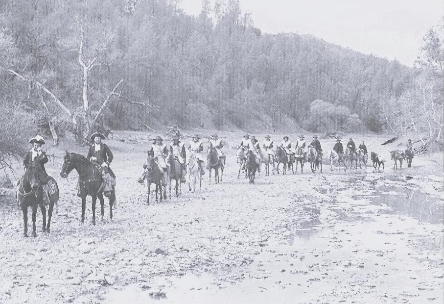 March 24, 1976: A group of colorfully costumed men on horseback met just south of San Juan Bautista at the terminus of the old wagon road. Dressed as Spanish soldiers and muleteers, among them is Joe White, unit ranger at Henry W. Coe State Park. They will retrace the route of Captain Juan Bautista de Anza, Father Pedro Font, and approximately twenty soldiers and muleteers along
