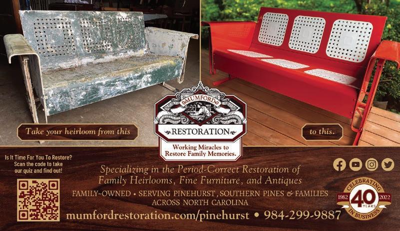 6 Regional Drive, Ste C Pinehurst, NC 28374 www.vascularinstituteofthepines.com 910.338.3381 Don’t Wait, Call Us Today! Your Legs Shouldn’t Stop You From Doing What You Love! Build muscle while burning fat! Treat incontinence fully clothed! NOW OFFERING Dr. Leah Hershman Tighten and improve skin texture! Needle-free facelift in 20 minutes!