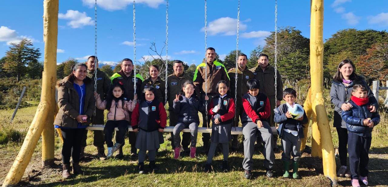 Mediante coordinaciones previas se pudo levantar necesidades de los pobladores y en especial de los más pequeños. Son 7 alumnos, quienes mediante su profesora solicitaron el apoyo de carabineros para construir juegos para el establecimiento.