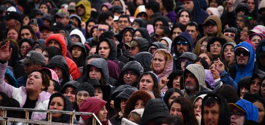 La tarde abrió con el talento regional de Los Pioneros del Sur, Constanza Saa y David Toledo, quienes hicieron cantar y bailar a los asistentes, preparando el ambiente para el esperado cierre. Cuando la lluvia se intensificó, el público muchos de ellos sin paraguas,