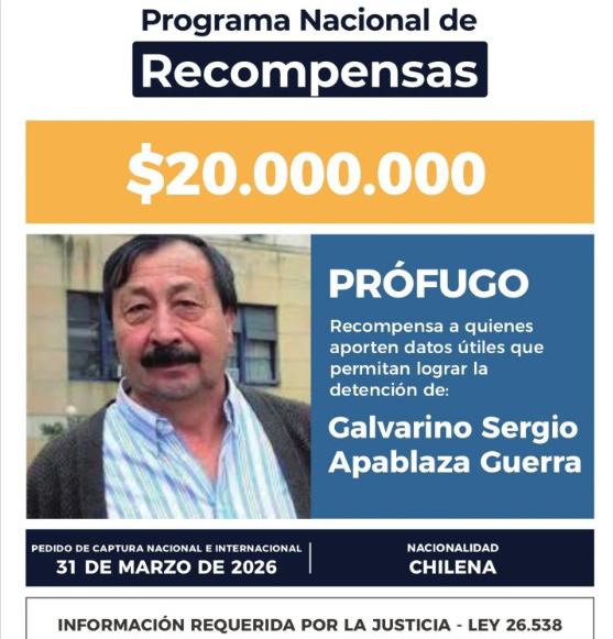 Gobierno argentino ofrece recompensa de más de $13 millones por información del paradero de Galvarino Apablaza